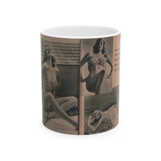 Anita Ekberg #437 - PHOTO Digest March '55 - 2 Pages, 3 B&W Photos & Caption (Vintage Female Icon) White Coffee Mug
