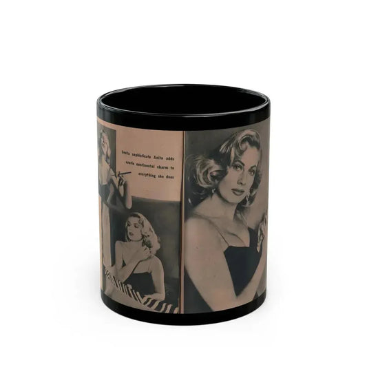 Anita Ekberg #436 - PHOTO Digest March '55 - 3 Pages, 3 B&W Photos & Caption (Vintage Female Icon) Black Coffee Mug