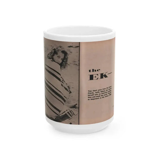 Anita Ekberg #418 - EYE Digest Mag. Jan. '54 - 2 Pages & B&W Centerfold (Vintage Female Icon) White Coffee Mug