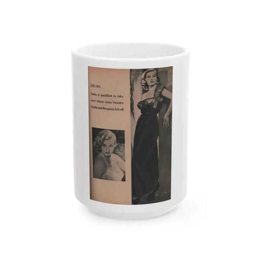 Anita Ekberg #413 - EYE Digest Mag. Nov. '53 - 1 Page, 2 B&W Pics & Caption (Vintage Female Icon) White Coffee Mug