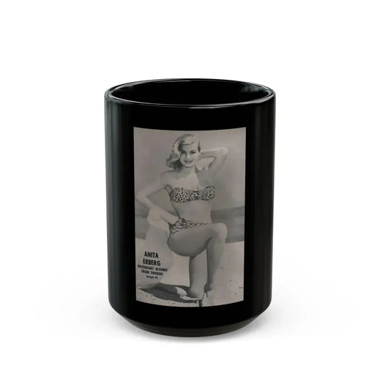 Anita Ekberg #415 - EYE Digest Mag. Nov. '53 - 1 Page, 2 B&W Pics & Caption (Vintage Female Icon) Black Coffee Mug