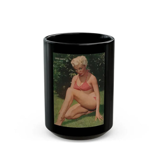 Sheree North #336 - 8x10.5 Mag. Page 2 Color Photos on Mag. Page with, 1 Full Pin-Up & 1 Smaller Glamour Head Shot from Movie Stars Parade Circa 50's (Vintage Female Icon) Black Coffee Mug