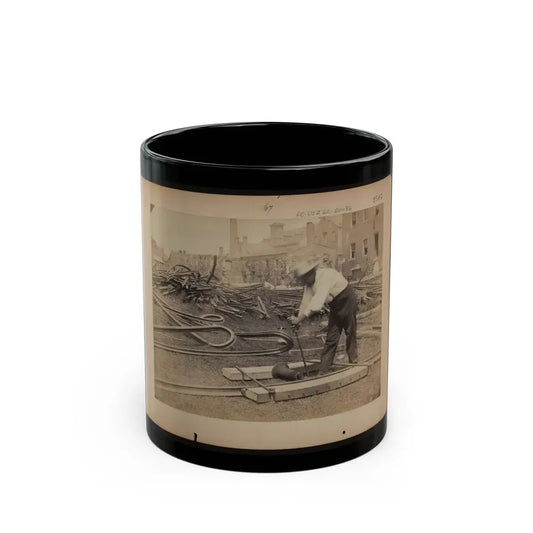 Railroad Construction Worker Straightening Track; Pile Of Twisted Rails In Background. 1862-63 (U.S. Civil War) Black Coffee Mug