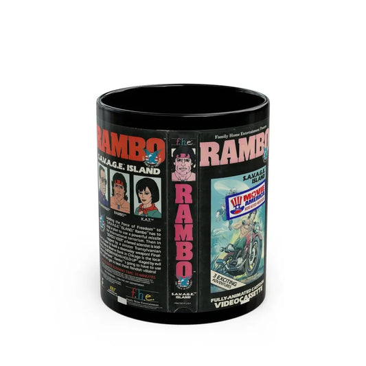 RAMBO CARTOON SAVAGE ISLAND (VHS COVER) - Black Coffee Mug