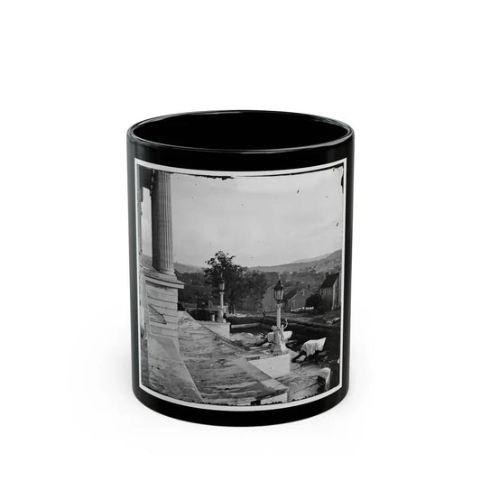 Nashville, Tenn. Steps Of The Capitol With Covered Guns; Vista Of The City Beyond (U.S. Civil War) Black Coffee Mug
