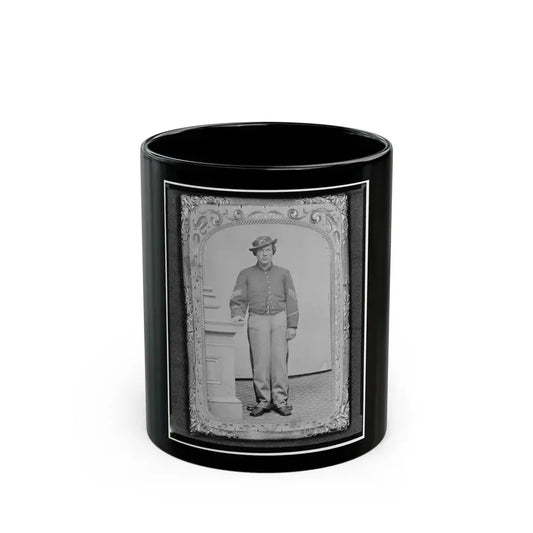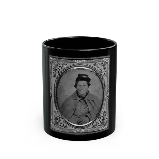 Jonas Nathan Shuler, Private, 10th Ill. Cav., U.S.A., Half-Length Portrait, Seated, Facing Front (U.S. Civil War) Black Coffee Mug