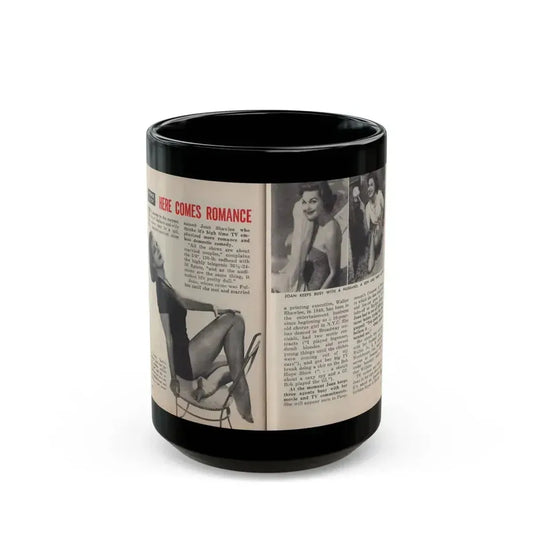 Joan Shawlee #47 - Pages 60 & 61 - Pages 1 & 2 of 3 with, Joan+3 B&W Photos, Captions & Article on her from People Today Pocket Mag. 1-26-55 (Vintage Female Icon) Black Coffee Mug