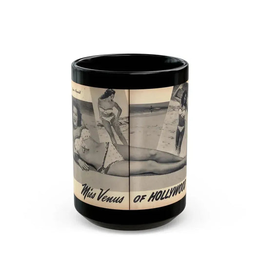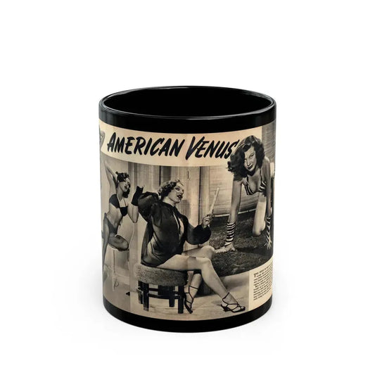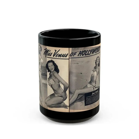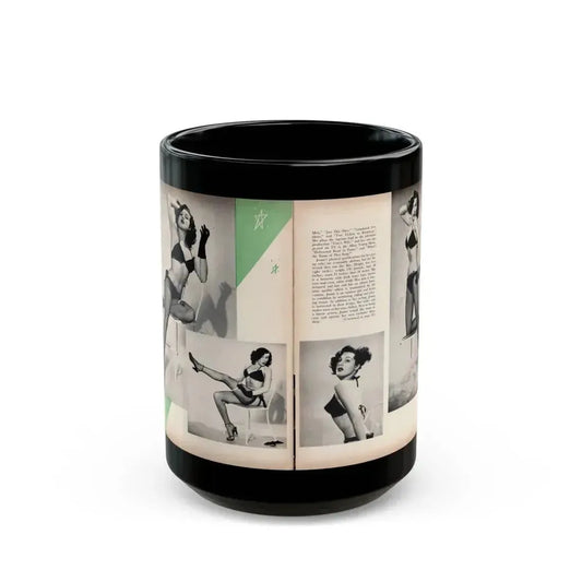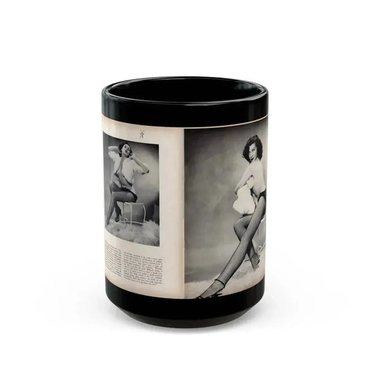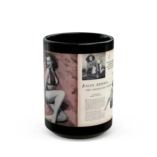 Joanne Arnold #101 - Pages 1 & 2 of 6+1 Color Tinted B&W Full Page Photo & 2 More B&W Pics, Caption & Article from Modern Man Mag. Feb. '52 (Vintage Female Icon) Black Coffee Mug