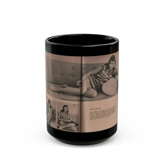 Joan Collins #551 - Photo Digest Mag. Jan. '56 - 3 B&W Photos, Captions & Short Paragraph (Vintage Female Icon) Black Coffee Mug