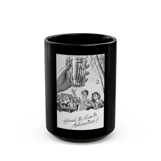 Hand to Mouth Adventure, 1946 - Black Coffee Mug