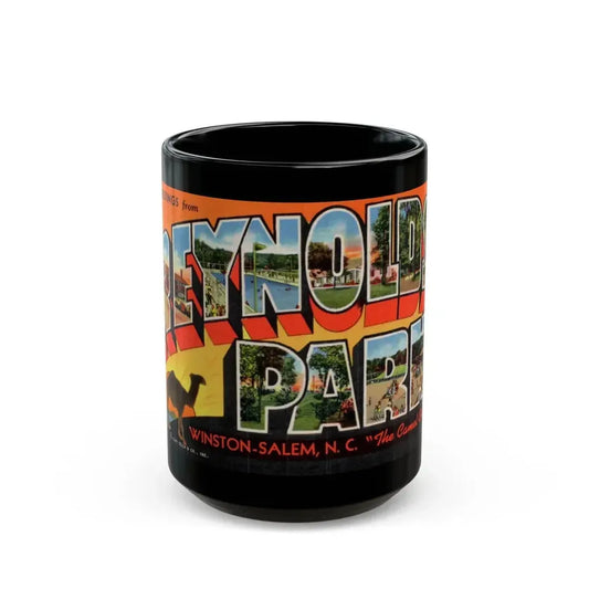Greetings from Reynolds Park Winston Salem NC The Camel City (Greeting Postcards) Black Coffee Mug