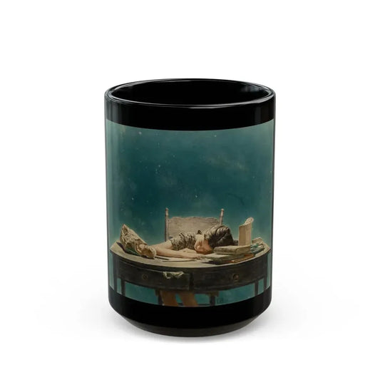Girl Asleep at Desk - Black Coffee Mug