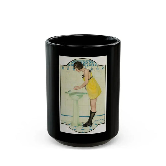 Girl at the Sink - Black Coffee Mug