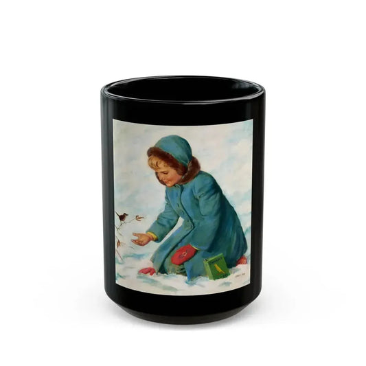 Girl Feeding a Canary, The American Weekly magazine cover, February 21, 1954 - Black Coffee Mug
