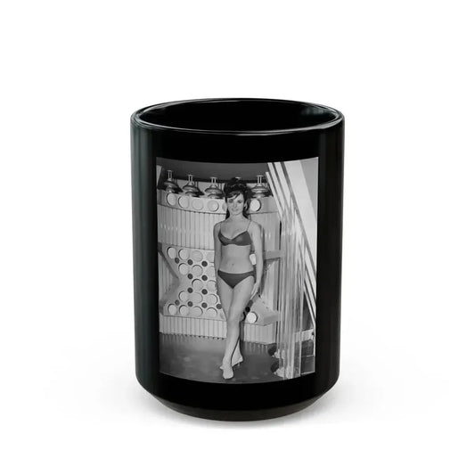 Gila Golan #70 - 7x10 B&W Full Body 2-Piece Bikini Pin-Up Page in Blue Tint from 60's Japanese Mag. Page (Vintage Female Icon) Black Coffee Mug