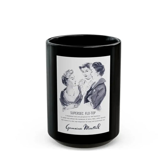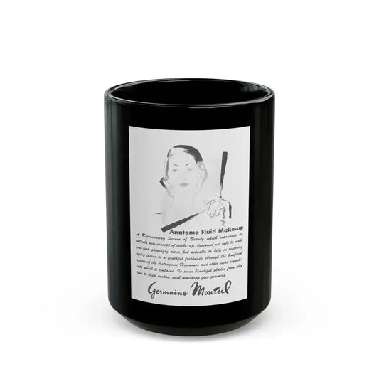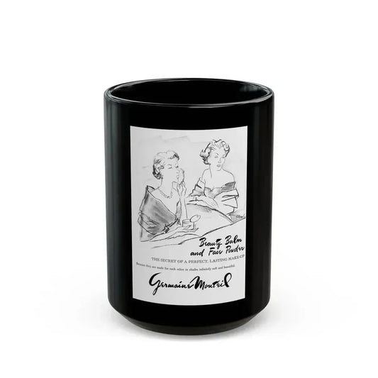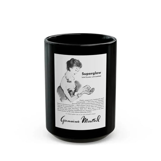 Germaine Monteil advt, Beauty Balm and Face Powder, 1950 - Black Coffee Mug
