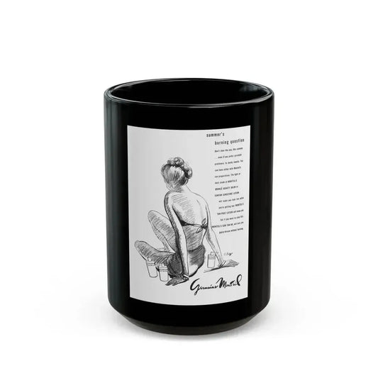 Germaine Monteil advt, Summer's burning question, 1947 - Black Coffee Mug