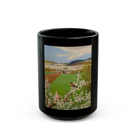 Farm Children Seeing the First Robin of Spring, The Saturday Evening Post cover, May 7, 1955 - Black Coffee Mug