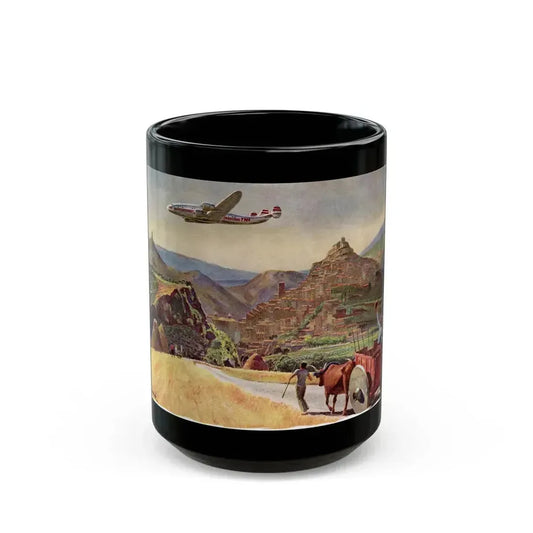 A TWA Starliner On The Road To Rome, The Saturday Evening Post advertisement, October 4, 1947 - Black Coffee Mug