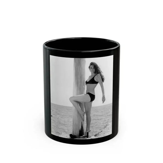 Caroline Munro #408 - 8x10 B&W Full Body in 2-Piece Bikini Photo Re-Strike from 1977 (Vintage Female Icon) Black Coffee Mug