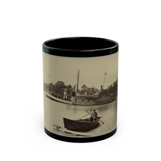 A Sailor Sits In A Small Boat In The Foreground With A Side Wheeler In The Rear (U.S. Civil War) Black Coffee Mug