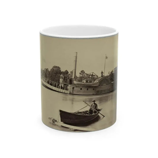 A Sailor Sits In A Small Boat In The Foreground With A Side Wheeler In The Rear (U.S. Civil War) White Coffee Mug