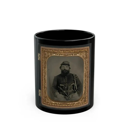 A. J. Blue, Cavalry Soldier In Union Shell Jacket And Bummer Cap With Three Remington Revolvers In His Belt, Holding A Sword (U.S. Civil War) Black Coffee Mug
