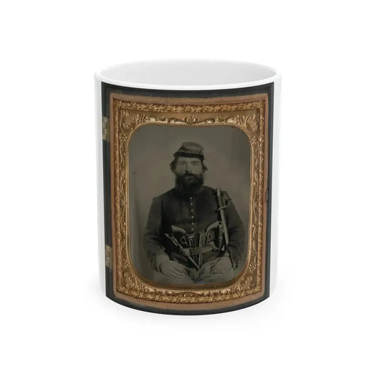 A. J. Blue, Cavalry Soldier in Union Shell Jacket and Bummer Cap With Three Remington Revolvers in His Belt, Holding a Sword (U.S. Civil War) Color Changing Coffee Mug 11oz