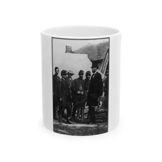 Abraham Lincoln On Battlefield At Antietam, Maryland, Cropped Version That Highlights Mclellan And Lincoln (U.S. Civil War) White Coffee Mug