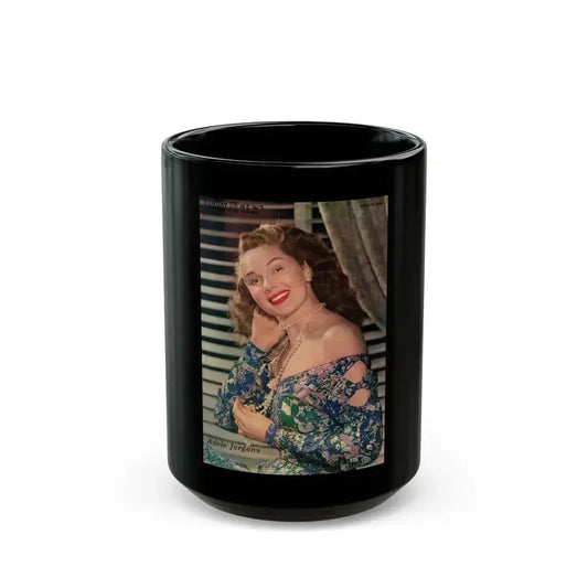 Adele Jergens #242 - 1 Page with, 1 Full 1 Color Glamour Portrait Photo from 1948 NYSN Newspaper Page (Vintage Female Icon) Black Coffee Mug