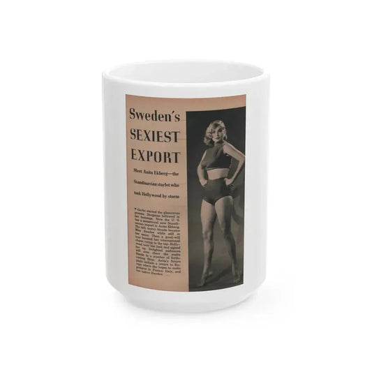 Anita Ekberg #413 - EYE Digest Mag. Nov. '53 - 1 Page, 2 B&W Pics & Caption (Vintage Female Icon) White Coffee Mug