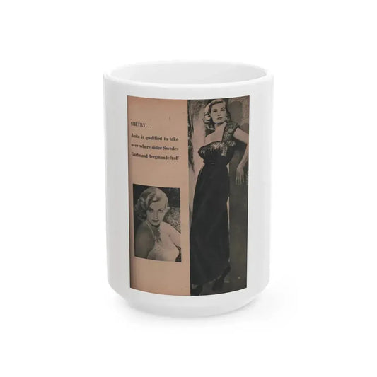 Anita Ekberg #415 - EYE Digest Mag. Nov. '53 - 1 Page, 2 B&W Pics & Caption (Vintage Female Icon) White Coffee Mug