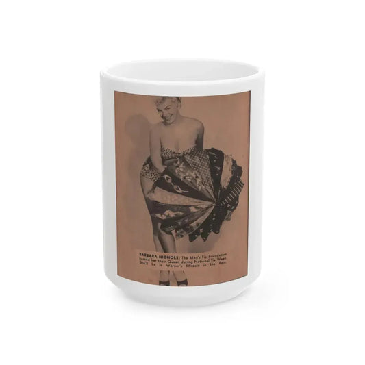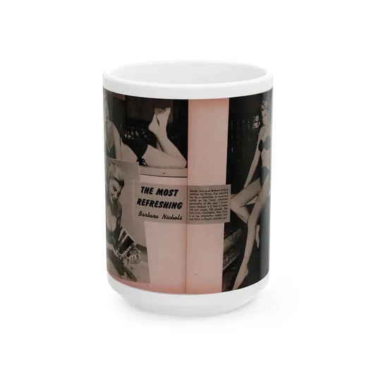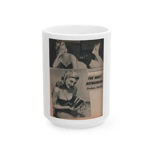 Barbara Nichols #392 - Pages 2 of 2 with, 4 B&W Photos, 1 Caption & Small Article from LAFF annual Mag. Fall '53 (Vintage Female Icon) White Coffee Mug
