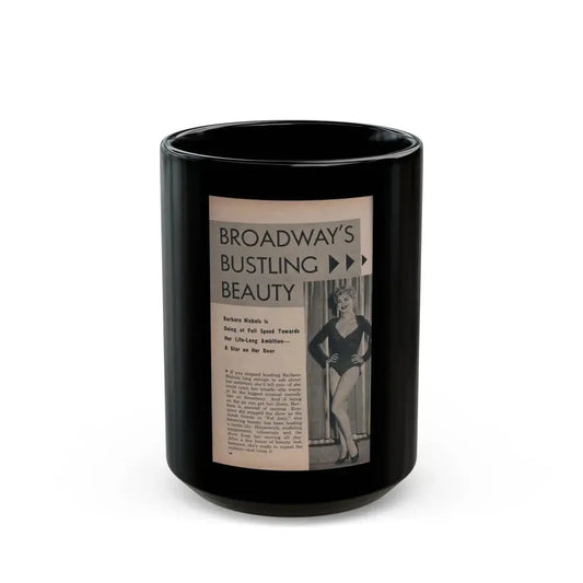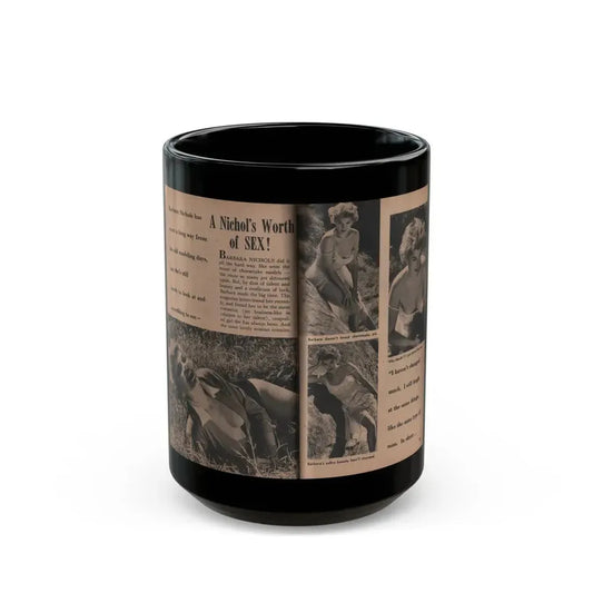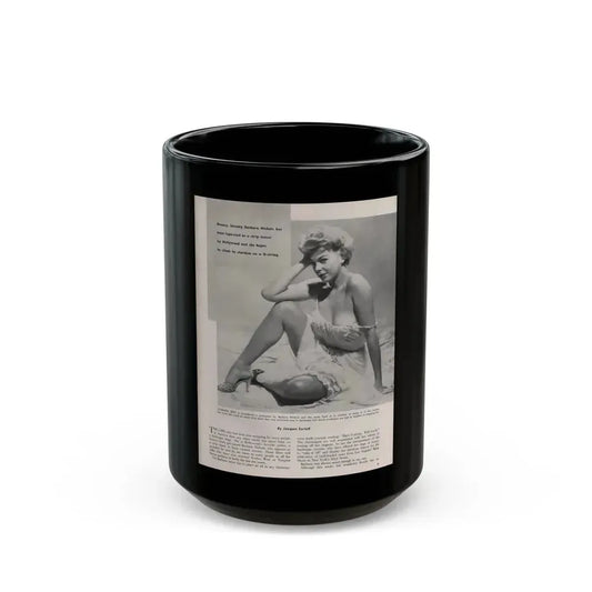 Barbara Nichols #405 - 1 Page, 1 B&W Photo & Article from Modern Man Mag. Sept. '56 (Vintage Female Icon) Black Coffee Mug