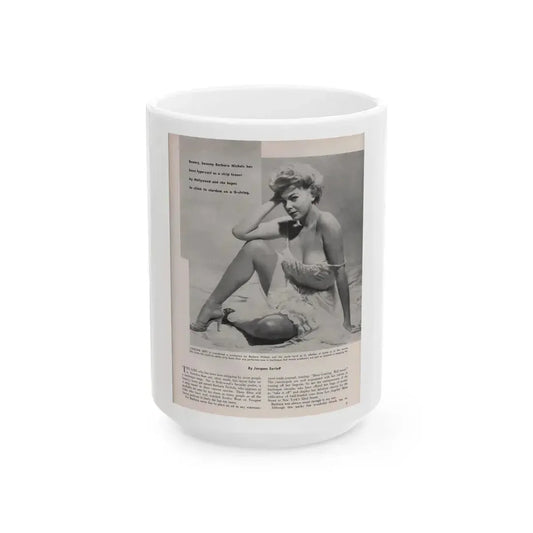 Barbara Nichols #405 - 1 Page, 1 B&W Photo & Article from Modern Man Mag. Sept. '56 (Vintage Female Icon) White Coffee Mug