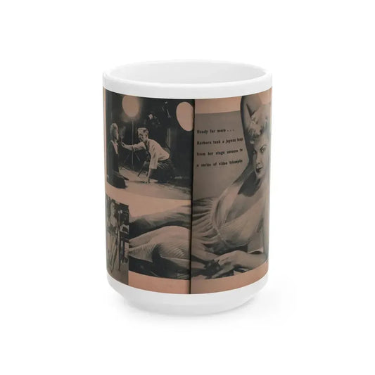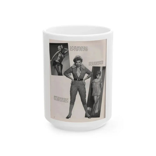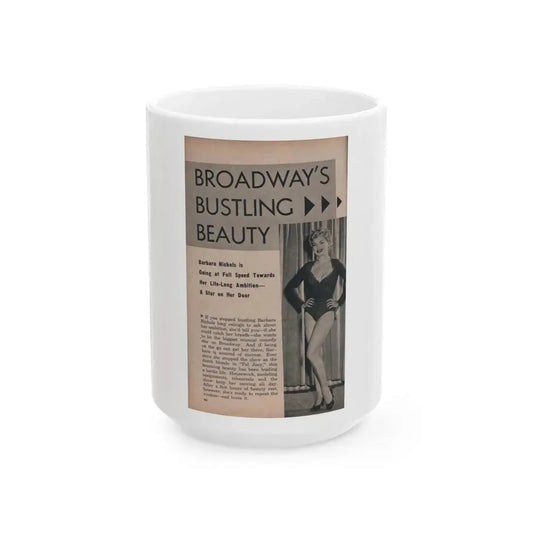 Barbara Nichols #408 - 1 Page, 2 B&W Photos & Article Continued from Modern Man Mag. Sept. '56 (Vintage Female Icon) White Coffee Mug