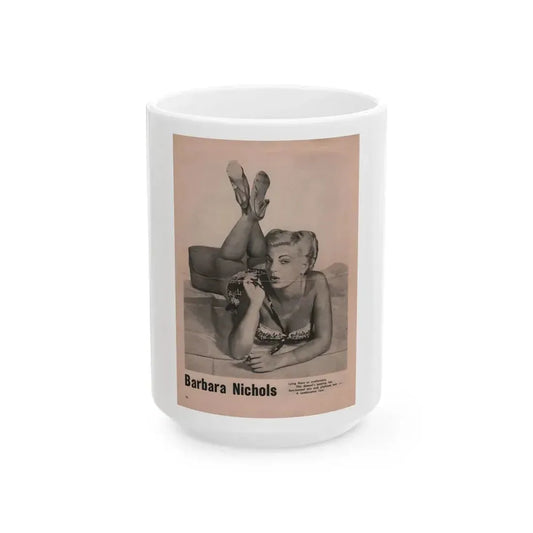 Barbara Nichols #421 - Page 2 of 6 with, 1 B&W Photo from PHOTO Digest Mag. Nov. '53 (Vintage Female Icon) White Coffee Mug