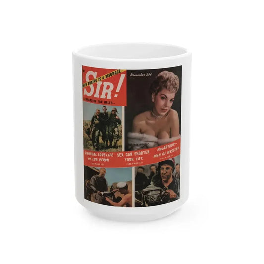 Barbara Nichols #449 - Barbara on Cover in top right hand corner in Color from Sir! Mag. Nov. '52 (Vintage Female Icon) White Coffee Mug
