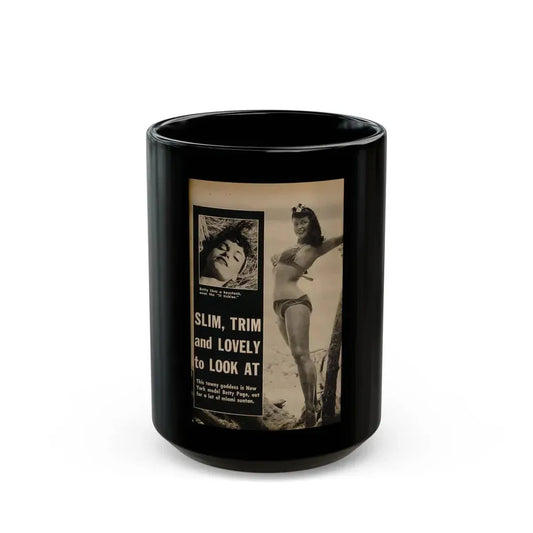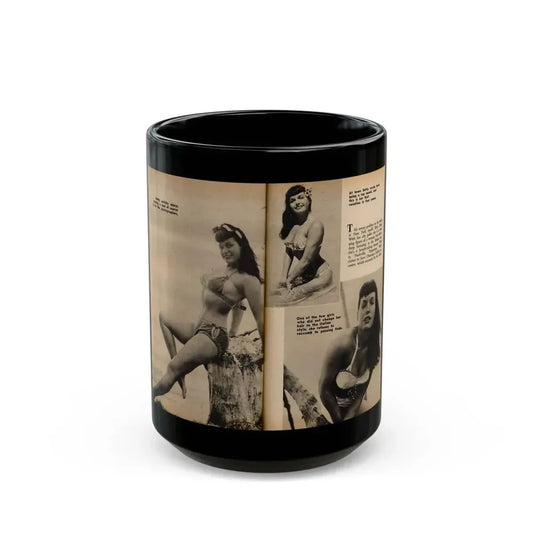 Bettie Page #1058 - 2 B&W Photos & Captions from Foto-rama Digest Mag. March '56 (Vintage Female Icon) Black Coffee Mug