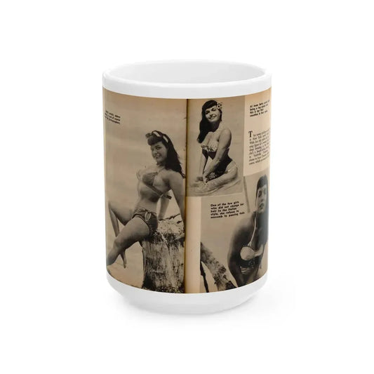 Bettie Page #1058 - 2 B&W Photos & Captions from Foto-rama Digest Mag. March '56 (Vintage Female Icon) White Coffee Mug