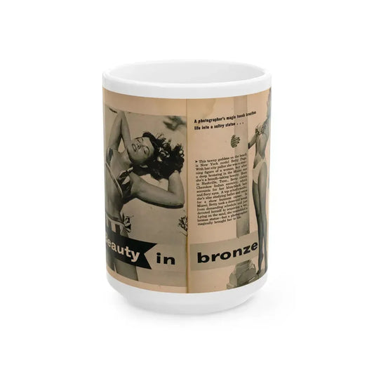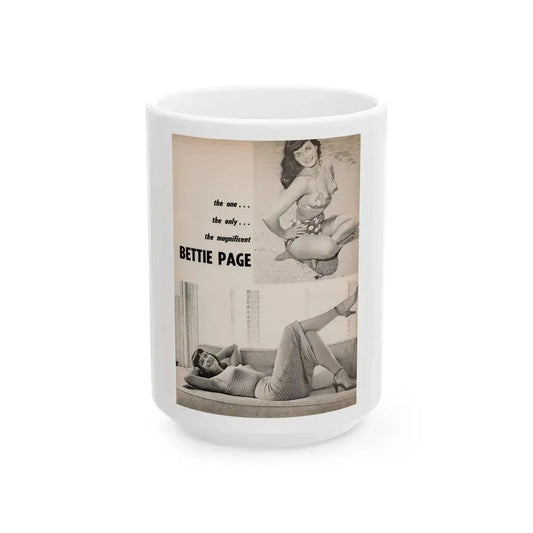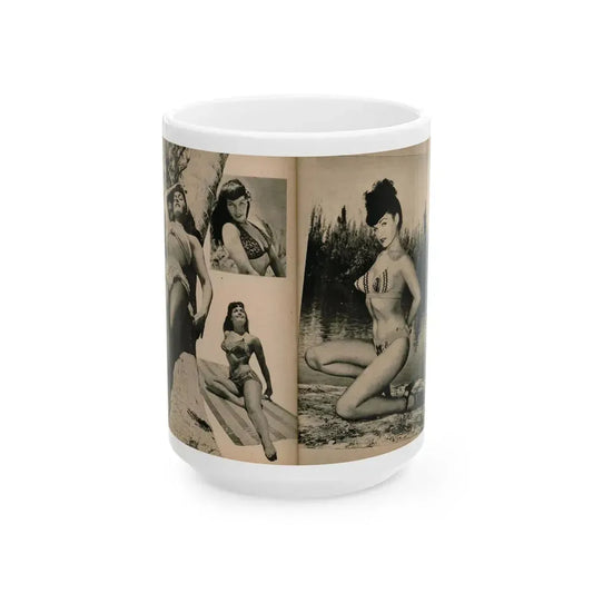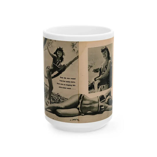 Bettie Page #1067 - Pages 4 of 6 of 7 with, 4 B&W Photos from BRIEF Digest Mag. Nov. '54 (Vintage Female Icon) White Coffee Mug