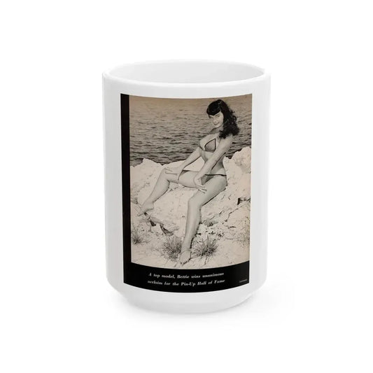 Bettie Page #1072 - Bettie Colorized or Art from a Bunny Yeager Pin-Up Book (Vintage Female Icon) White Coffee Mug
