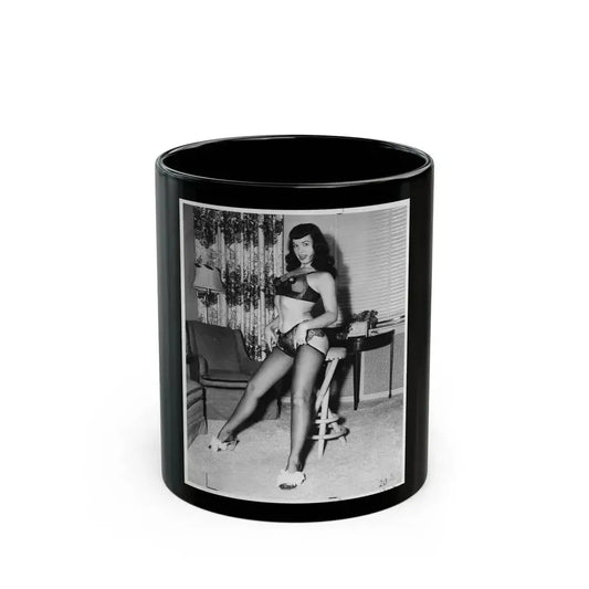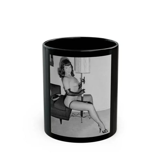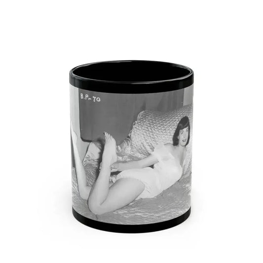 Bettie Page #1073 - Bettie in B&W from a Bunny Yeager Pin-Up Book (Vintage Female Icon) Black Coffee Mug