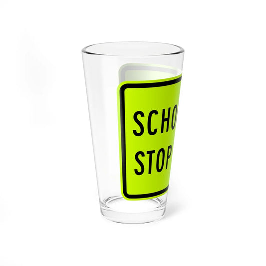 SCHOOL BUS STOP AHEAD Delaware S3-1p-DE (Delaware) (Road Sign) Pint Glss 16oz