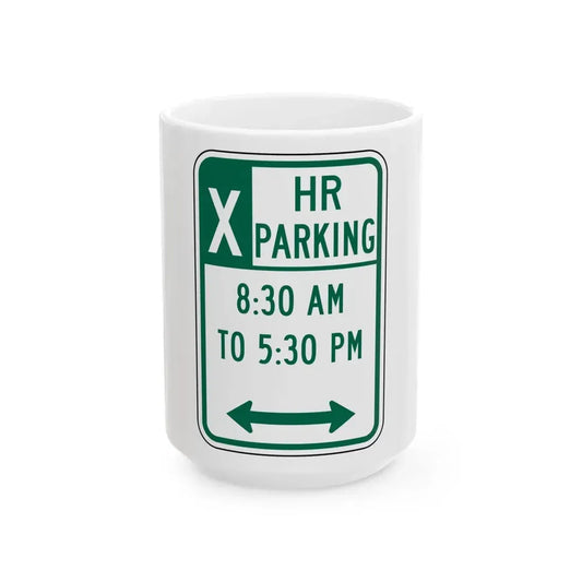 X PARKING 830 AM 10 530 PM eG Delaware R7-108-DE (Delaware) (Road Sign) White Coffee Mug