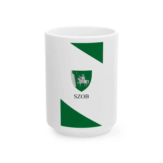 Flag of Szob reverse (Hungary) White Coffee Mug