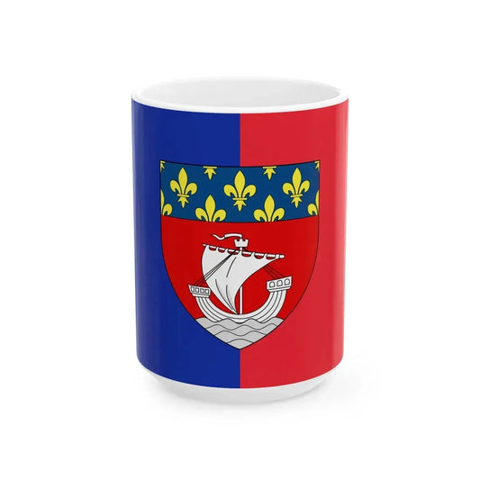 Flag of Paris with coat of arms (France) White Coffee Mug