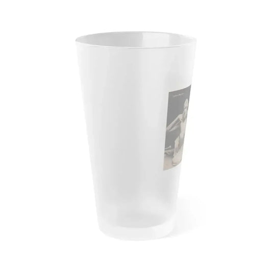 Jeanne Carmen #328 - Inside of Back Cover 1 Full Body no feet bummer Nude in Sheet B&W Glamour Cheesecake Pic from VUE Digest Mag. June '52 (Vintage Female Icon) Frosted Pint Glass 16oz