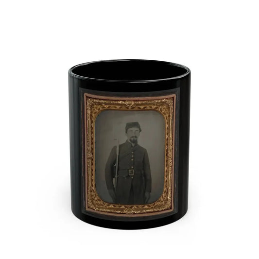 Unidentified Private In Confederate Uniform And Georgia Frame Buckle With Bayoneted Musket (U.S. Civil War) Black Coffee Mug