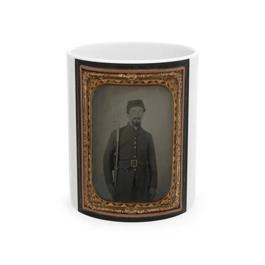 Unidentified Private In Confederate Uniform And Georgia Frame Buckle With Bayoneted Musket (U.S. Civil War) White Coffee Mug